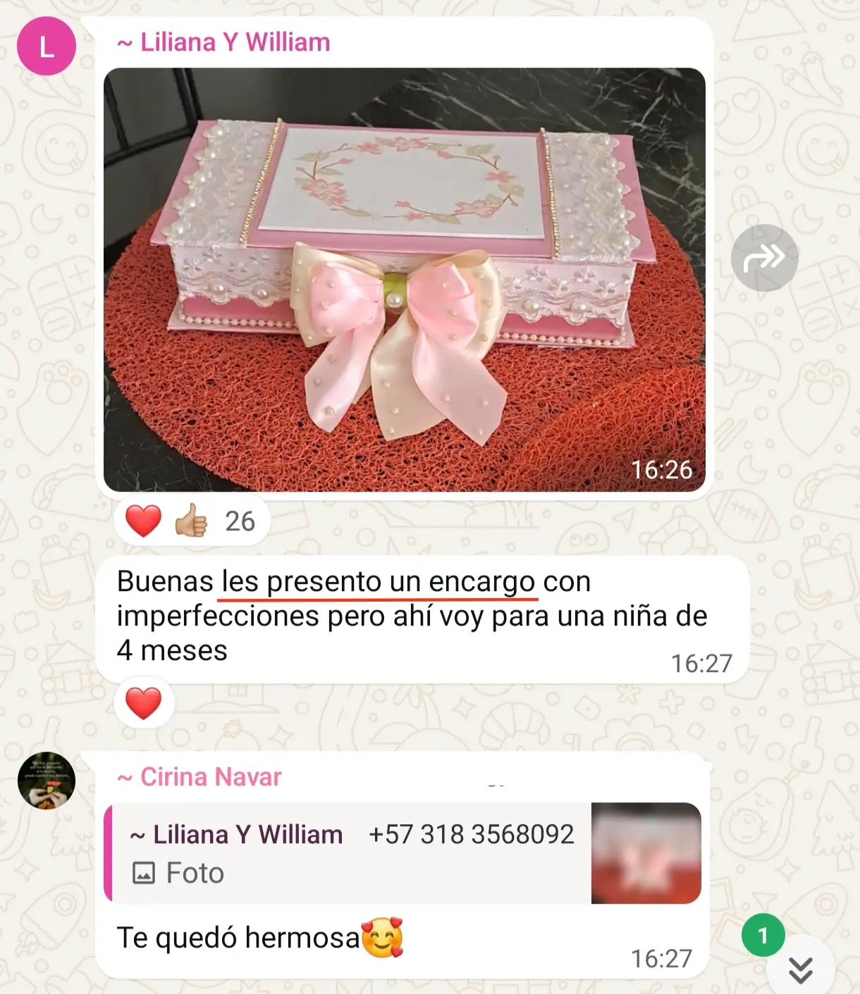 Aprenderás las técnicas secretas de decoración que no solo duplican el valor percibido de tus cajitas, sino que te posicionan como una creadora premium.